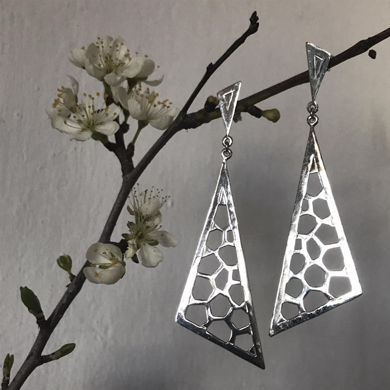 Φύλο ασήμι 925 , πάχους 0,8χλστ. , βάρος μεγάλου τριγώνου 3γρ. , σεγαριστό και χαρακτό.